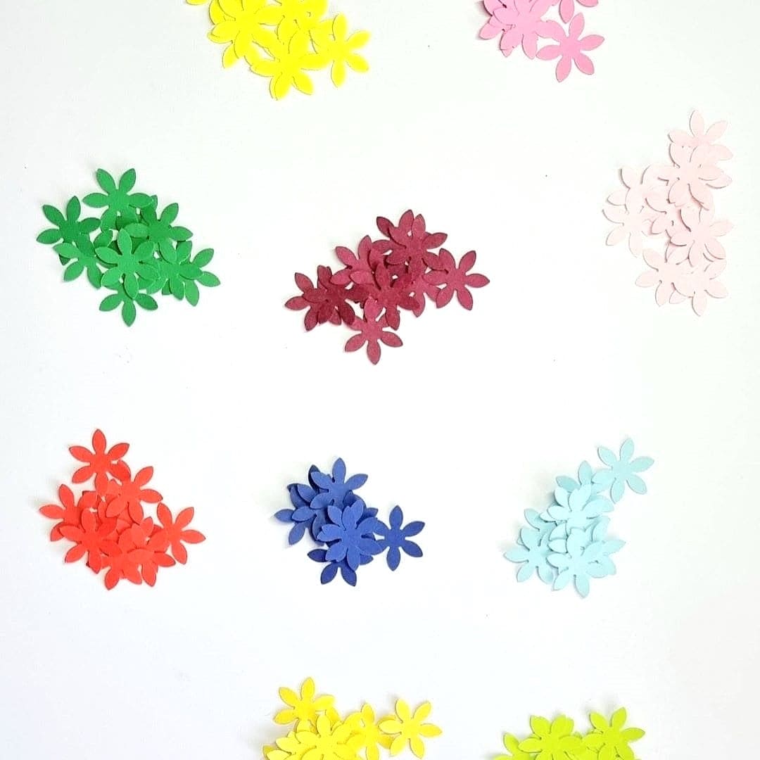 - These handmade flower confetti are all made with quality scrapbooking paper and are all in different colours.
